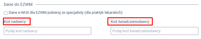 Uzyskane powyżej dane wpisz w ustawieniach specjalisty, w zakładce E-Zdrowie, w sekcji Dane do EZWM.