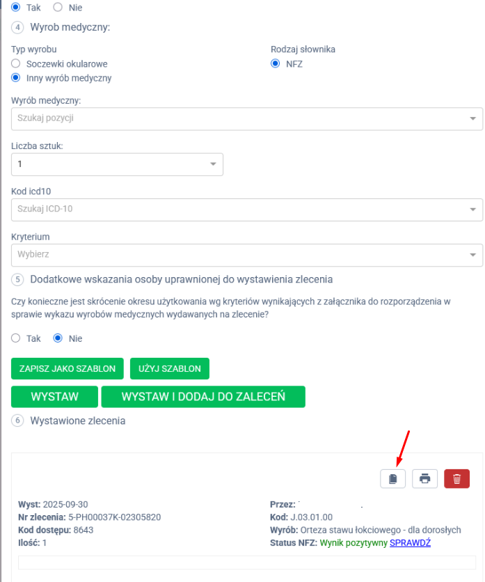 Specjalista może w łatwy sposób skorzystać z funkcji powielania wcześniej wystawionego zlecenia.