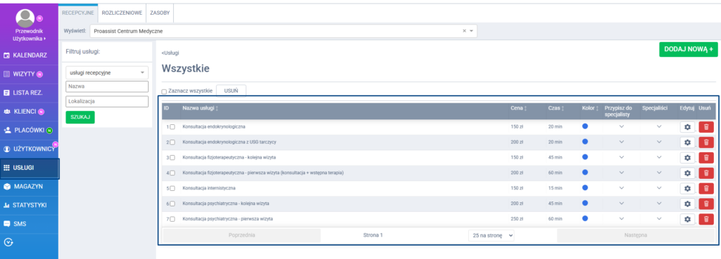 Każda usługa powinna być jasno opisana i powiązana z konkretną specjalizacją.