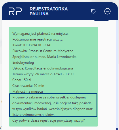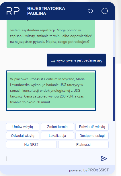 – Chatbot może udzielać precyzyjnych odpowiedzi na pytania pacjentów, np. czy dostępne jest badanie USG lub inna konkretna usługa.