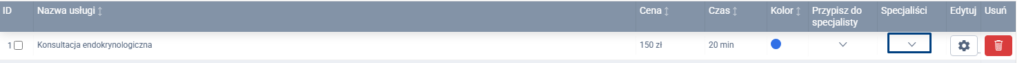Przy każdej usłudze dostępna jest możliwość jej rozwinięcia i sprawdzenia, do którego specjalisty jest przypisana.