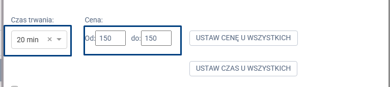 Edycji czasu trwania usługi – określamy, ile minut trwa dana konsultacja lub badanie.