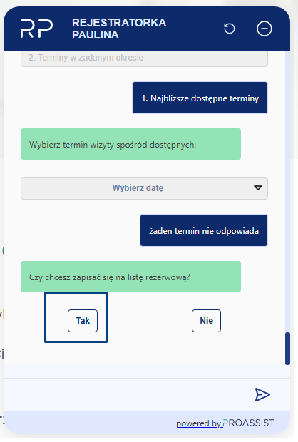 Jak uruchomić zapis na listę rezerwową przez chatbota? #