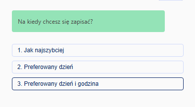 Kolejnym krokiem jest wybór preferowanego terminu zapisu – pacjent ma do wyboru jedną z trzech dostępnych opcji.