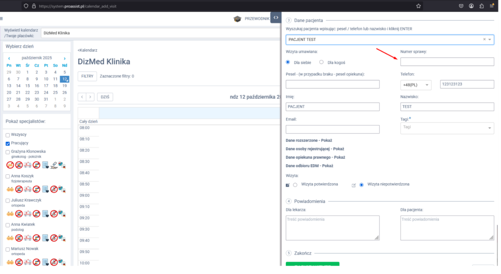 Rejestracja wizyty z numerem sprawy (np. ubezpieczyciela) #