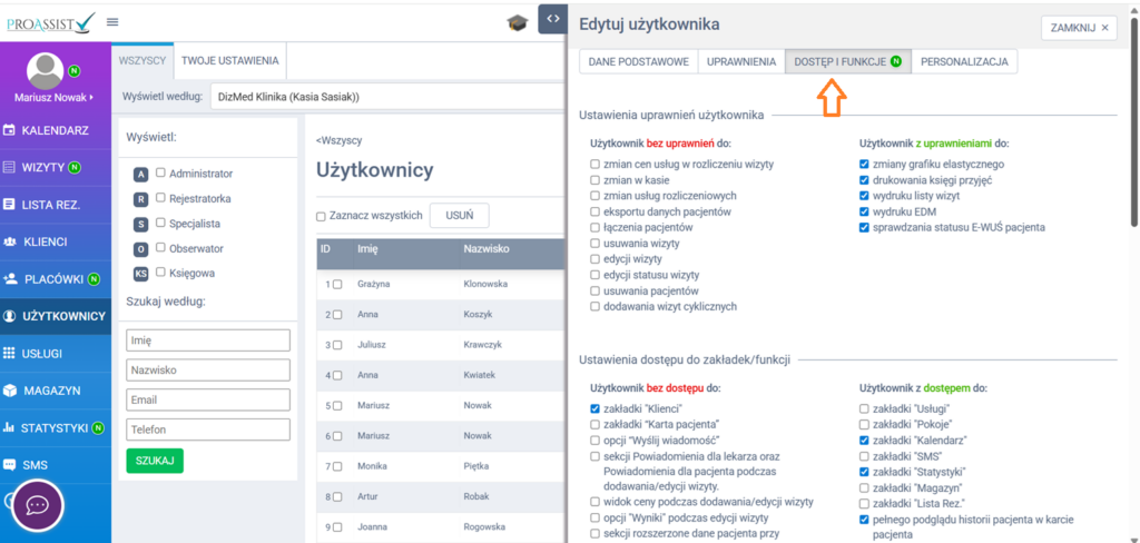 5. Z listy wybierz specjalistów, do których dokumentacji EDM dany użytkownik ma mieć dostęp.