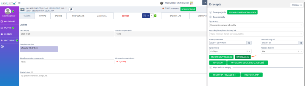 W oknie przeprowadzania wizyty przejdź do zakładki e-recepta.