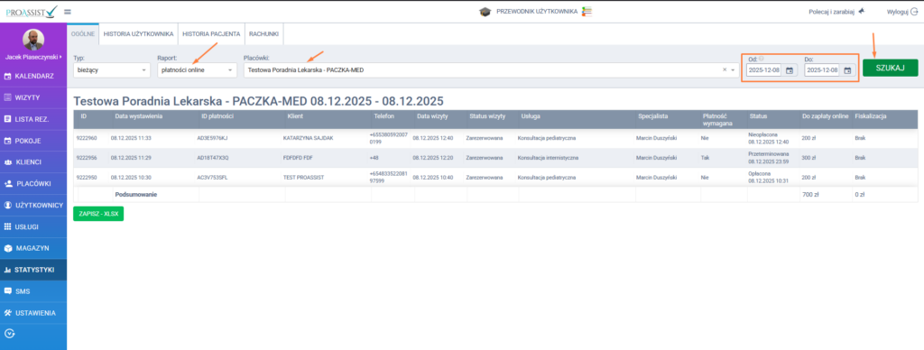 - Z bocznego menu przejdź do STATYSTYKI → Raport dot. płatności online.