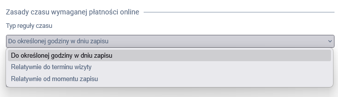 – Wizyta musi zostać opłacona w określonej liczbie godzin od momentu dokonania zapisu, a jednocześnie nie później niż określona liczba godzin przed wizytą.