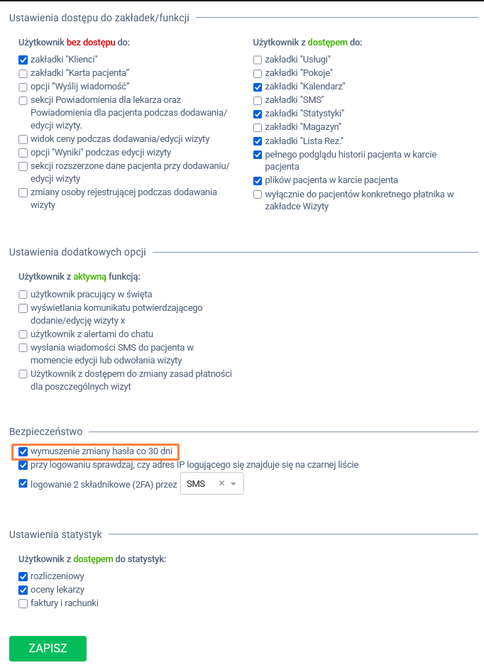 ⚠️ Uwaga: Włączenie tej opcji spowoduje, że użytkownik będzie musiał zmieniać hasło co 30 dni.